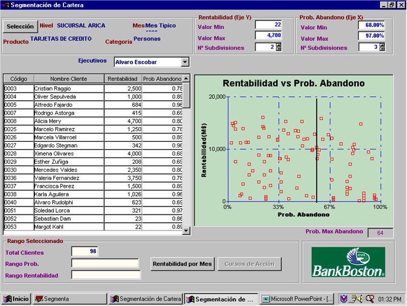 Modelo que permite identificar el riesgo de fuga de un cliente (atrittion). A través de un modelo econométrico, las empresas identifican antes de la salida, qué clientes podrían abandonarlos. Si los catalogamos por el aporte de cada uno, se pueden segmentar y retener.